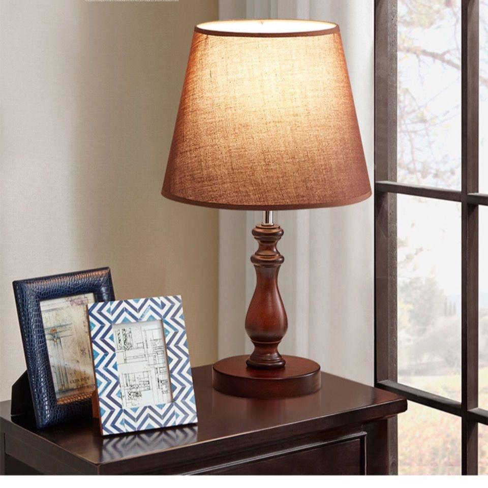 Lámpara de Mesa de Noche LED Minimalista Moderna, Madera Maciza, Cálida, Creativa, con Control Remoto de Intensidad, Estilo Rústico Americano, Personalizada