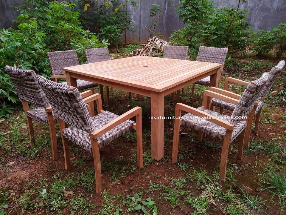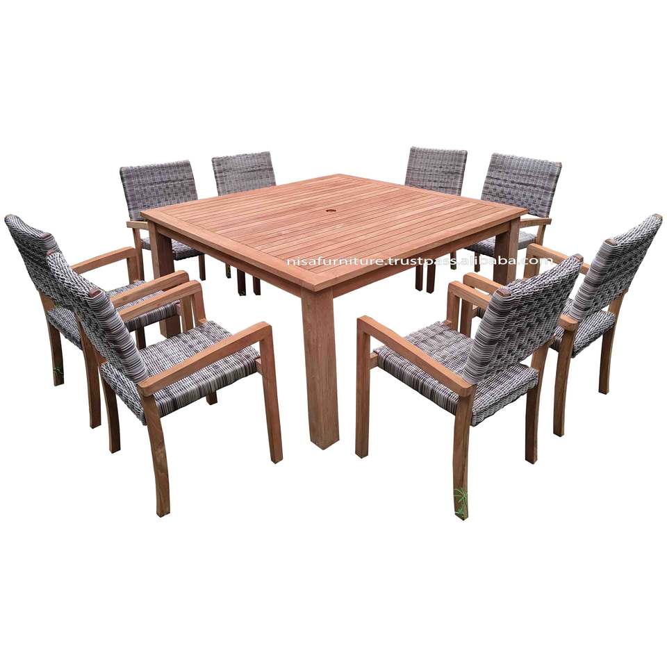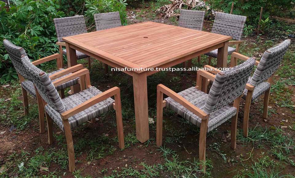 Sillas minimalistas modernas de mesa de comedor de teca gris de ratán PE hechas de madera para uso al aire libre en el jardín Villa Patio Apartamento Parque