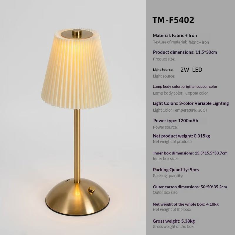 Lámpara de Mesa Moderna Minimalista de Tela Plisada y Metal, Recargable, Táctil, Luz Nocturna, Luz Ambiental para Dormitorio, Regalo