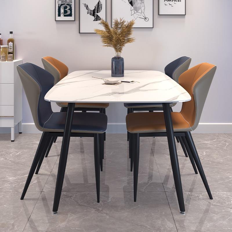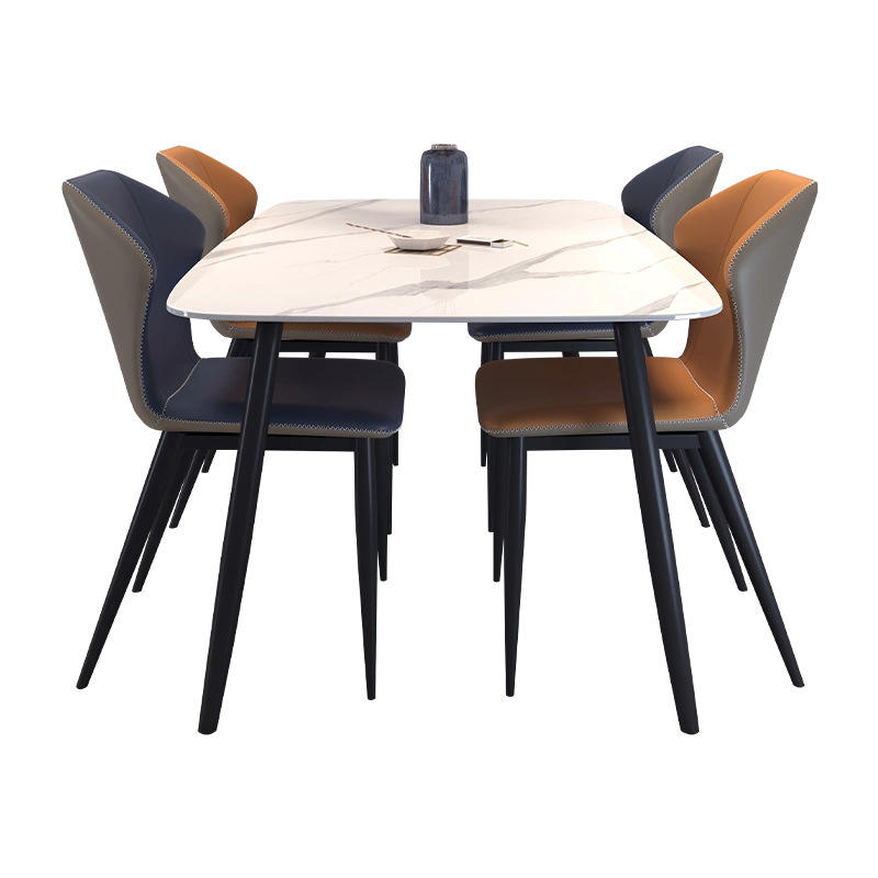 Mesa de Comedor Rectangular Moderna y Minimalista con Borde Curvo, Diseño de Lujo Ligero para Casas y Apartamentos Pequeños