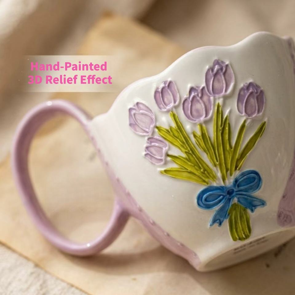Taza de Cerámica Moderna Minimalista con Relieve de Rosas, Gran Capacidad, 550 ml, con Diseño de Asa Estilo Americano