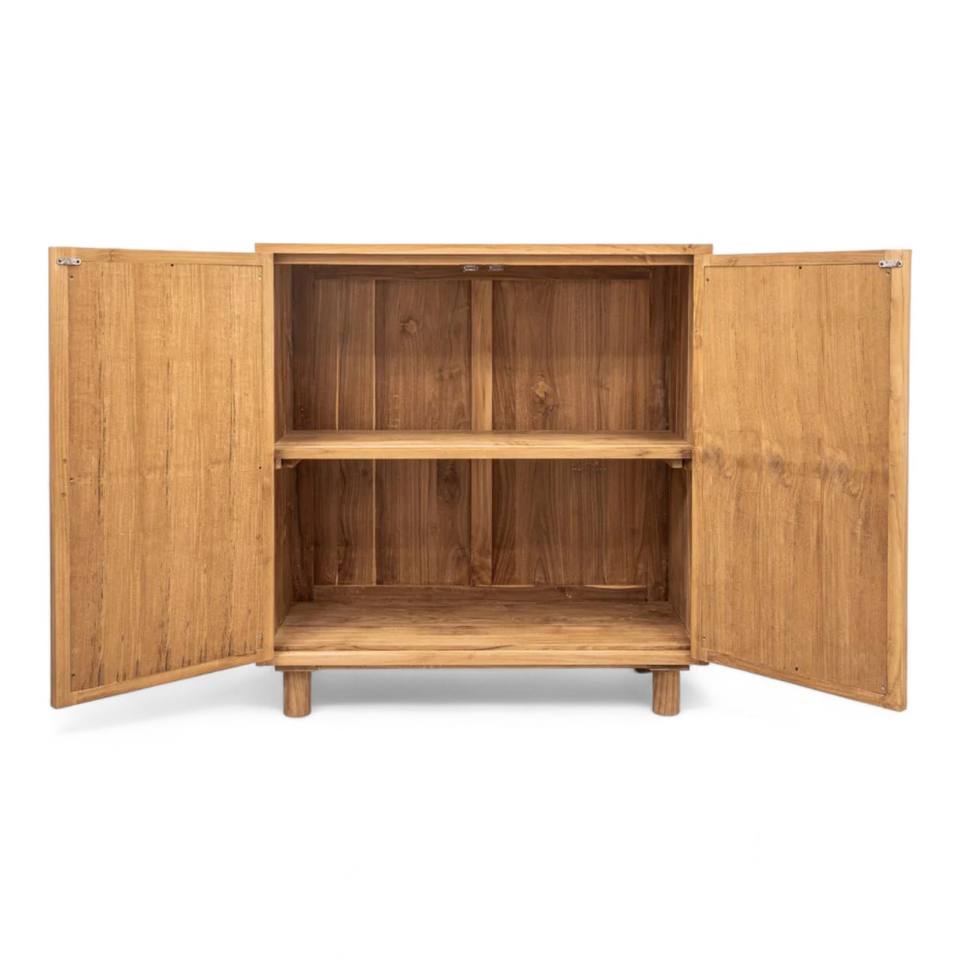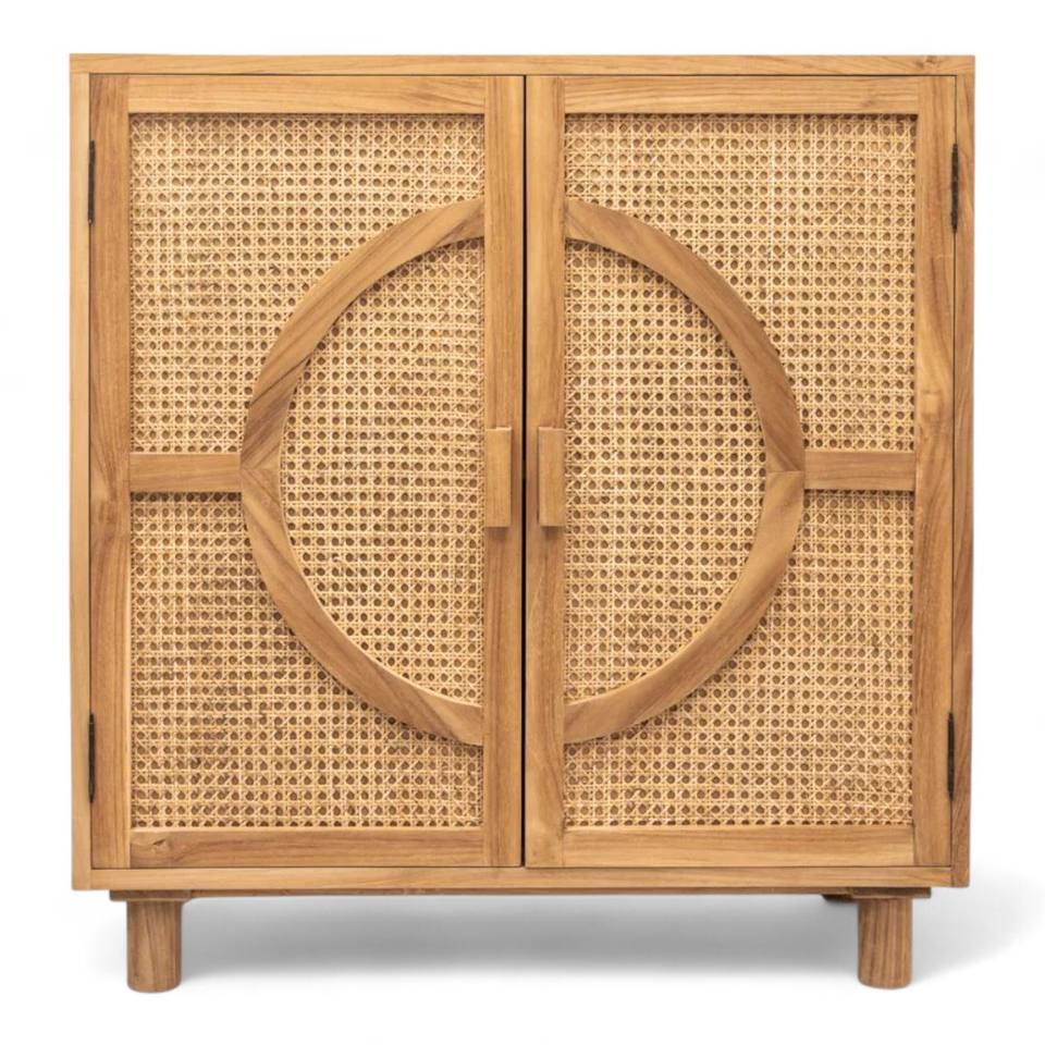 Nombre del producto:Gabinete de cocina minimalista de madera de teca con puertas de ratán