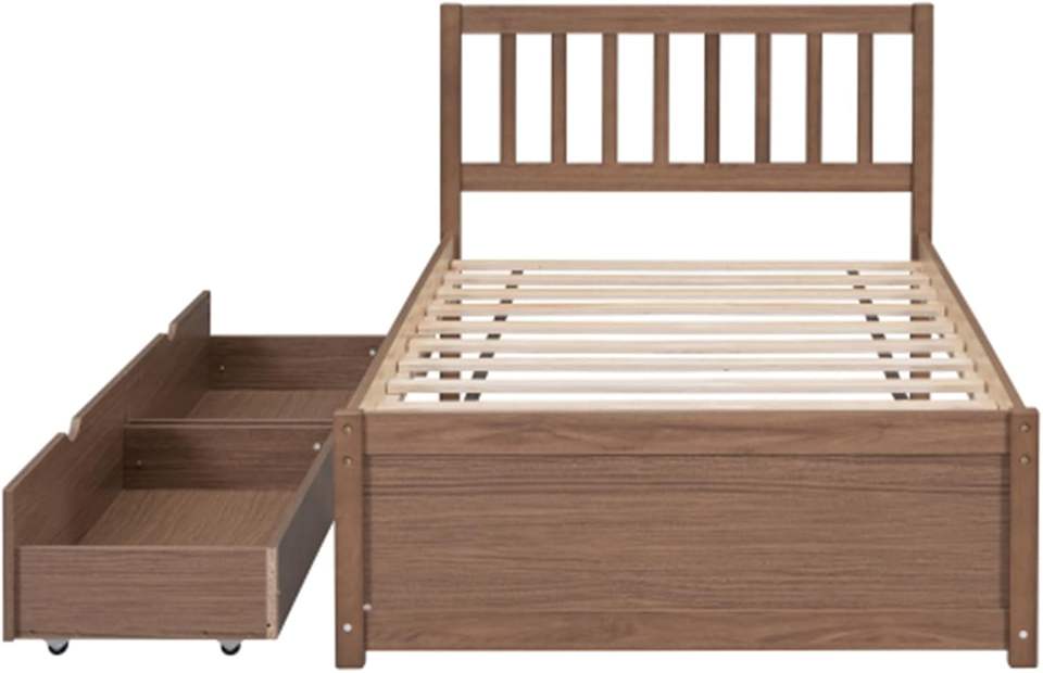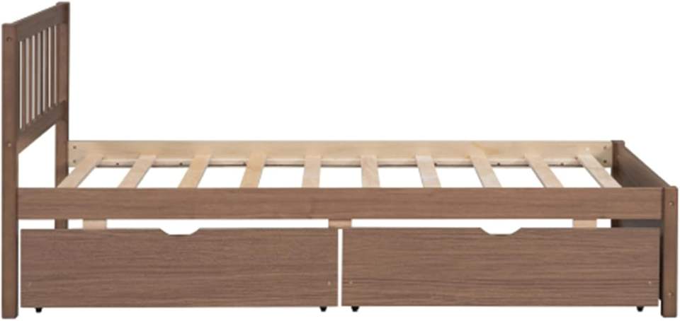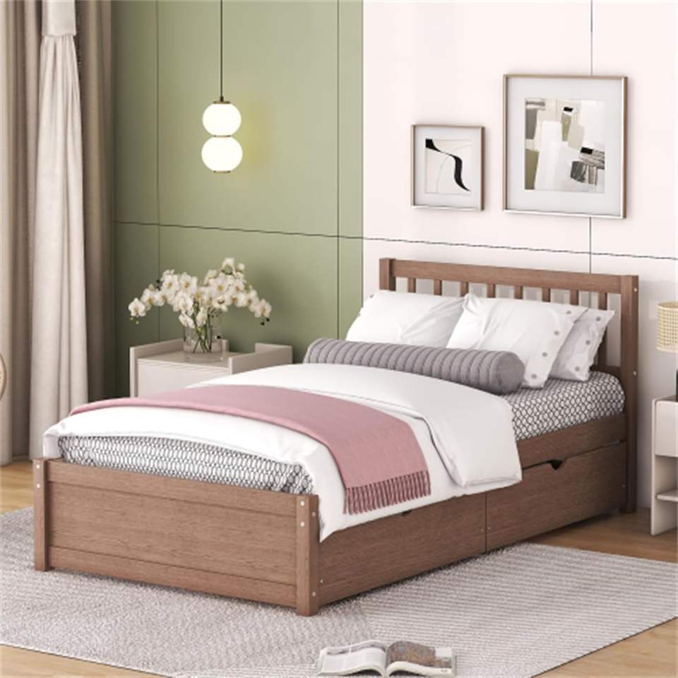 Cama de plataforma doble minimalista moderna de color nogal con marco de madera maciza y 2 cajones de almacenamiento Diseño tradicional