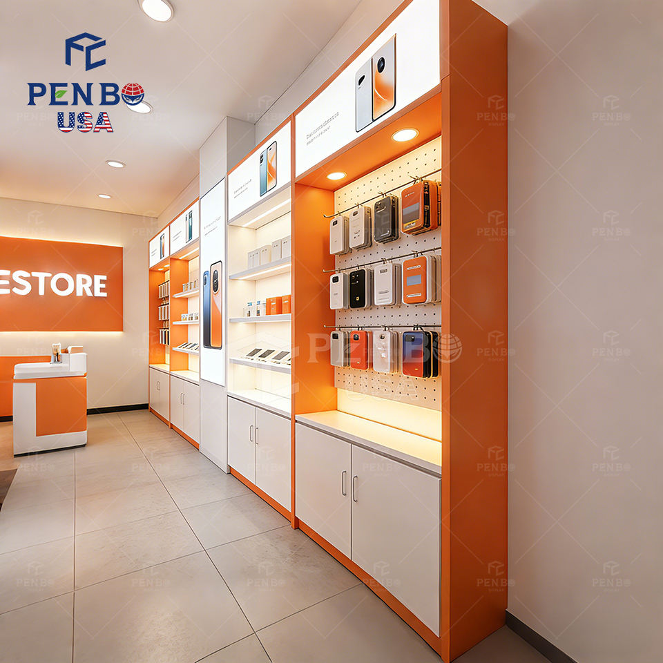 Mobiliario moderno para tienda de teléfonos móviles, iluminación LED personalizada, muebles interiores para tienda de celulares, vitrina para teléfonos móviles