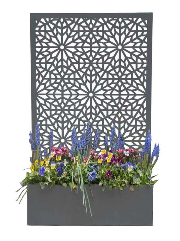 Jardinera Móvil Moderna con Rejilla, Recubierta en Polvo, de Acero Corten