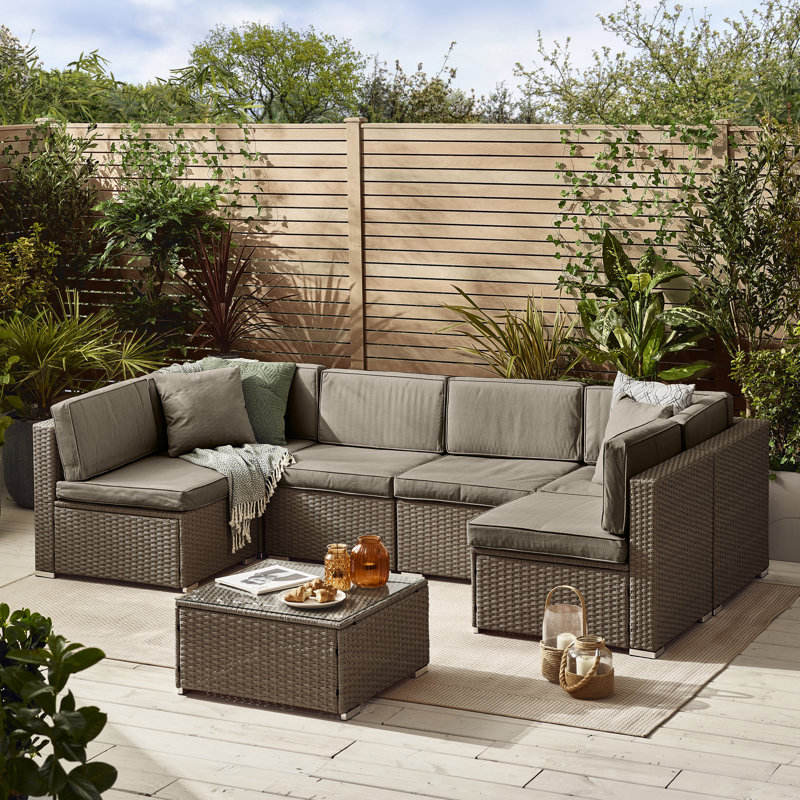 Juego de conversación al aire libre de ratán PE modular moderno con mesa para sofás de jardín en jardines y patios modernos