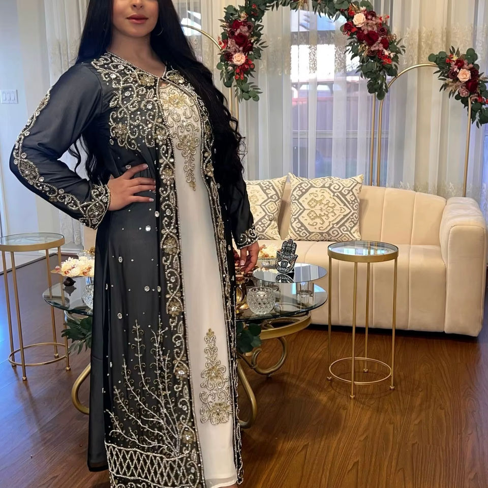 Kaftan islámico marroquí moderno para mujer Vestido de playa largo hasta el suelo con suministro ODM de manga larga transpirable