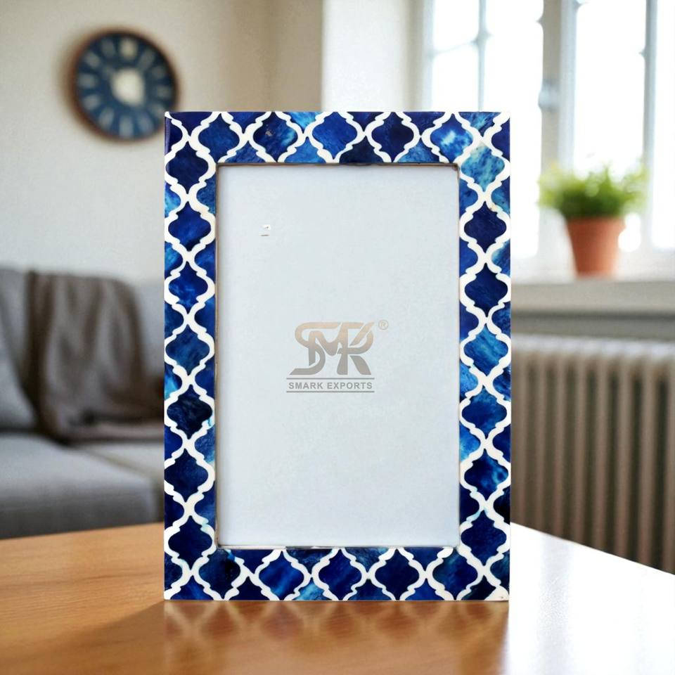 Marco de Fotos Moderno con Incrustaciones de Resina de Hueso con Patrón Marroquí, Hecho a Mano, para Montar en la Pared o sobre una Mesa, Disponible en Varios Tamaños