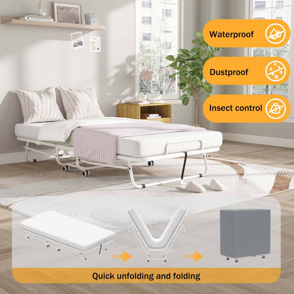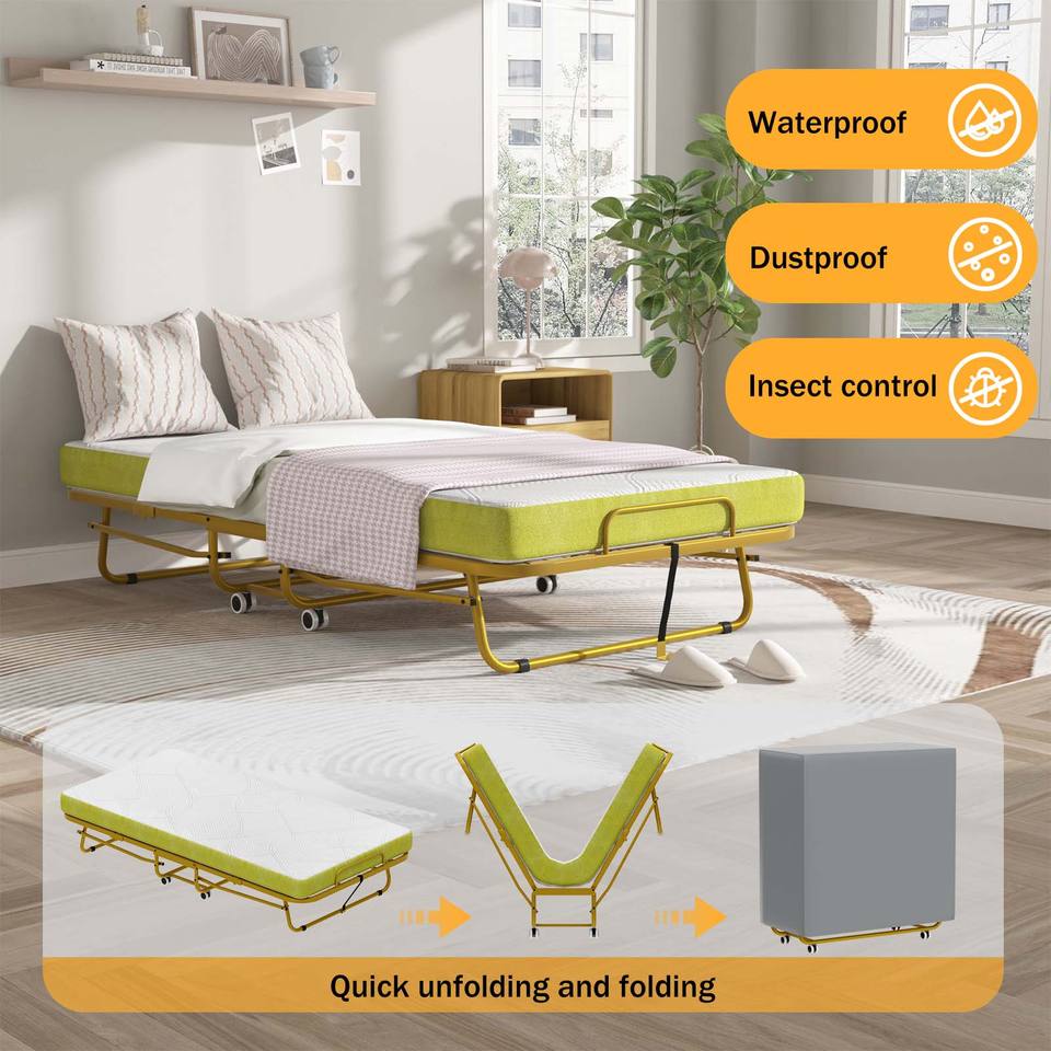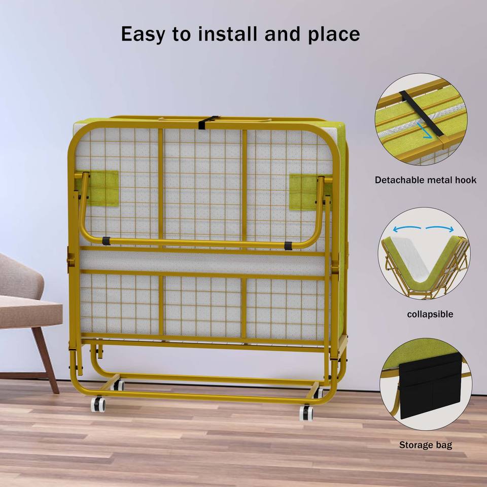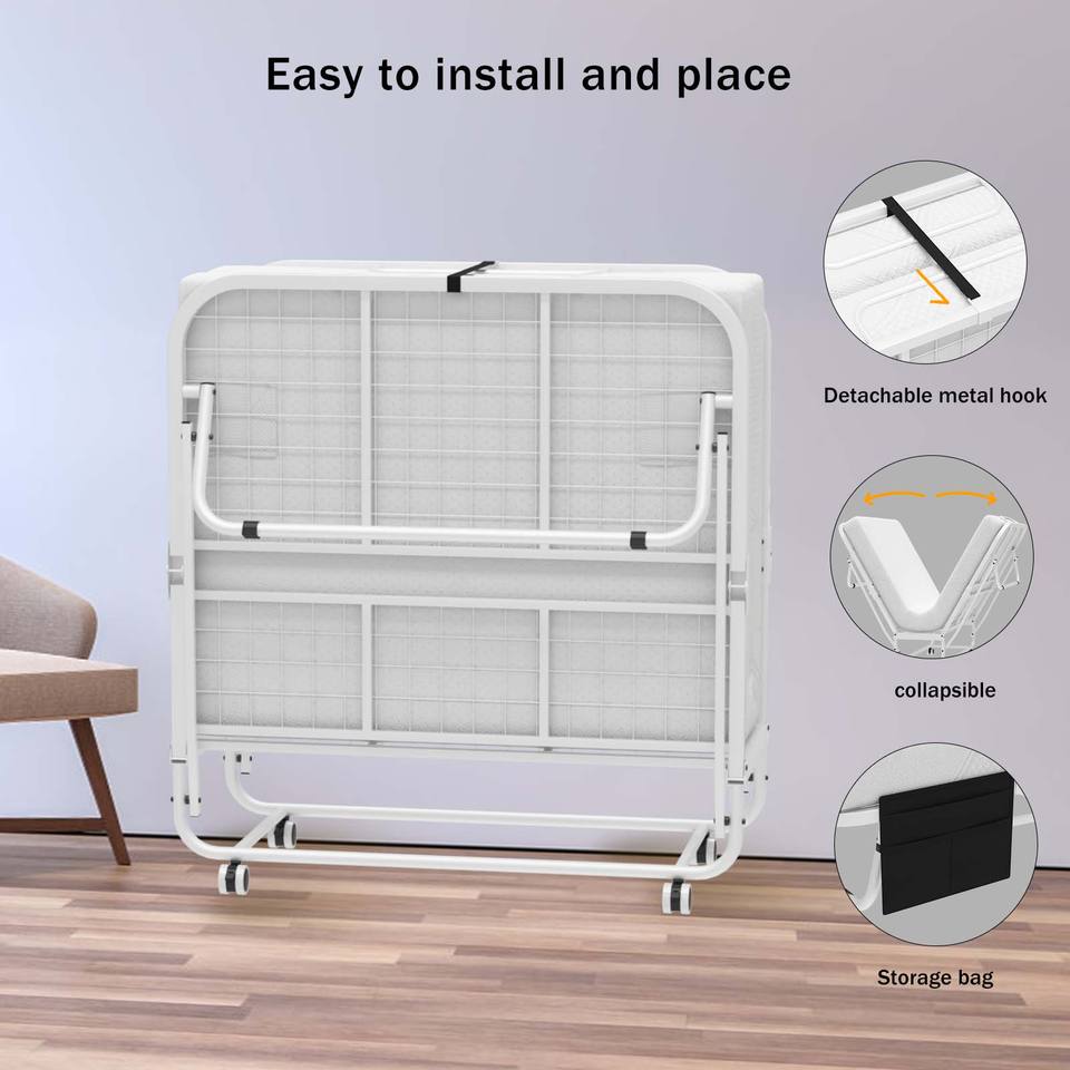 Cama Plegable Moderna Multifuncional con Altura Ajustable, Colchón de Espuma Viscoelástica, Ruedas Giratorias, Cama Plegable Tamaño Individual, Cama de Invitados