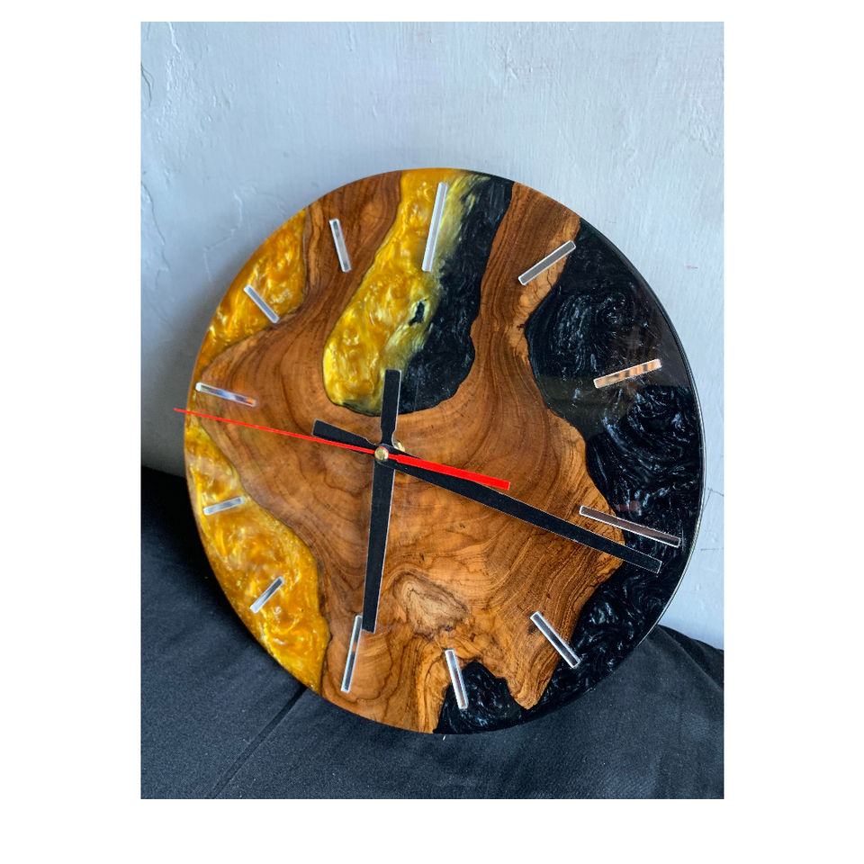 Reloj de pared multifunción moderno 16 ''Diámetro 38,5 cm Espesor 3cm Resina de madera de teca