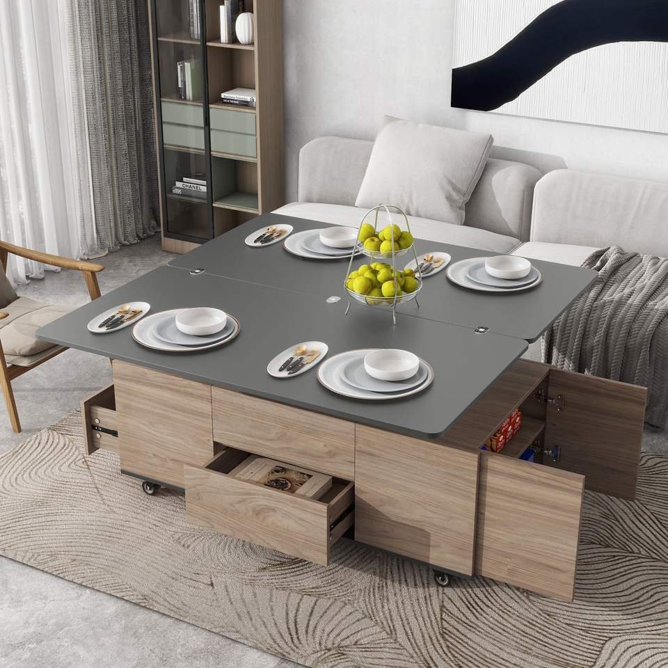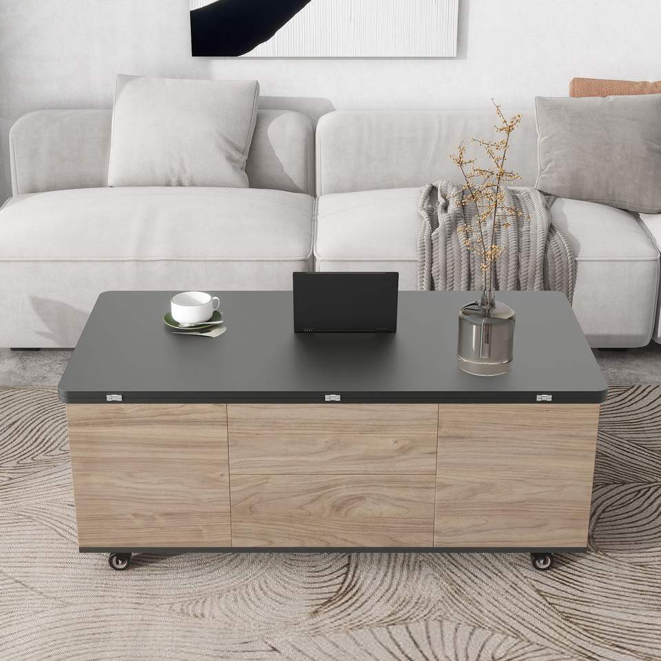 Mesa de Centro Moderna Multifuncional con Tapa Elevable, Cajones y Estantes, Mueble Práctico y Elegante