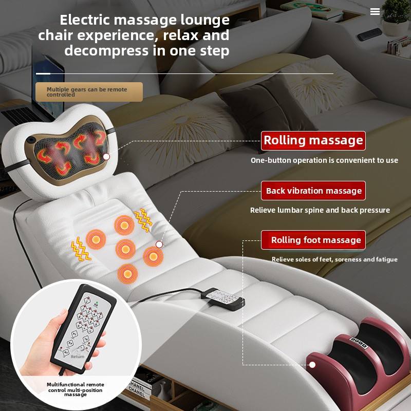 Sillón de masaje + mesa auxiliar + caja fuerte + taburete + masaje de pies + luz LED + música