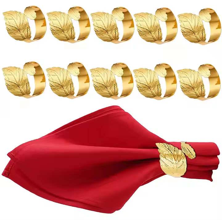 Servilleteros modernos, servilletas blancas, juegos de cubiertos con opción de logotipo, 2025 disponibles en dorado Son Suministros de hotel perfectos."