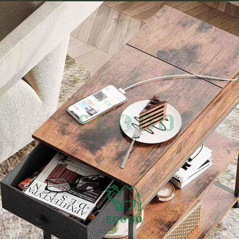 product:Narrow Side Bamboo Table with Charging S