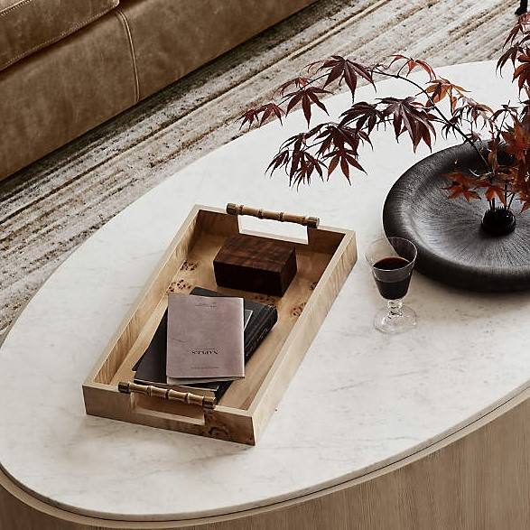 Bandeja de Servir Rectangular Moderna de Madera Natural Hecha a Mano con Asas de Bambú para Alimentos, Bebidas, Decoración del Hogar, Uso en Hoteles y Restaurantes