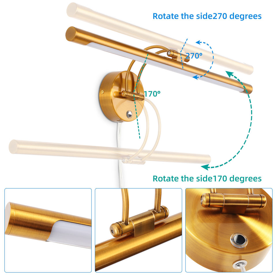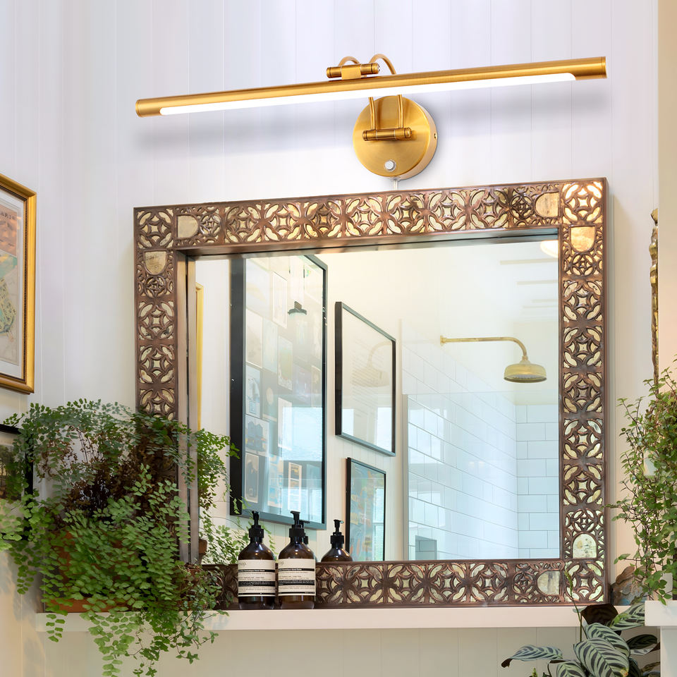 Lámpara de Pared con Espejo LED Moderna de Diseño Nuevo, Iluminación para Cuadros, Latón, Clasificación IP44, Temperatura de Color 3000K/4000K/6000K, Vida Útil de 50000 Horas