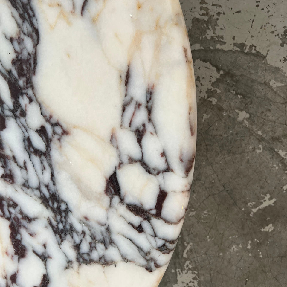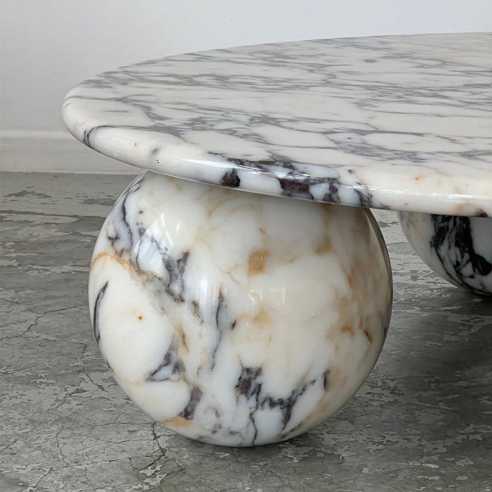 Mesa de Centro Redonda de Mármol Estilo Nórdico Moderno, Calacatta Viola, Patas de 3 Bolas, Mueble Duradero y Ecológico para Dormitorio o Sala de Estar