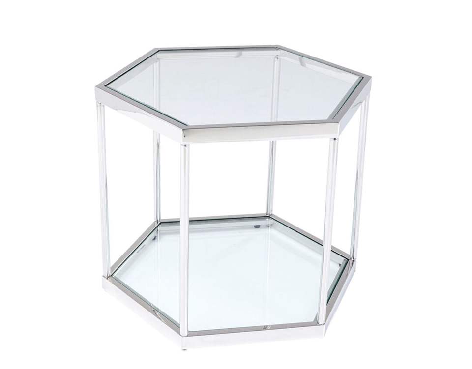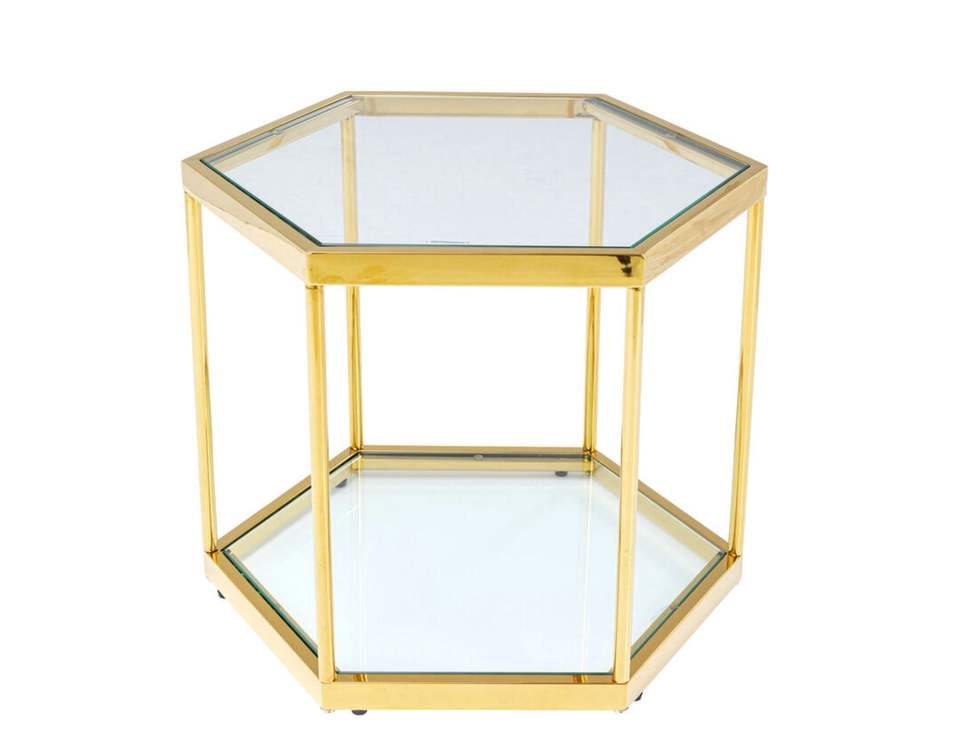 Mesa de Centro Hexagonal de Estilo Nórdico Moderno, de Vidrio y Acero Inoxidable, Mesa de Té Simple para Apartamentos Pequeños y Balcones