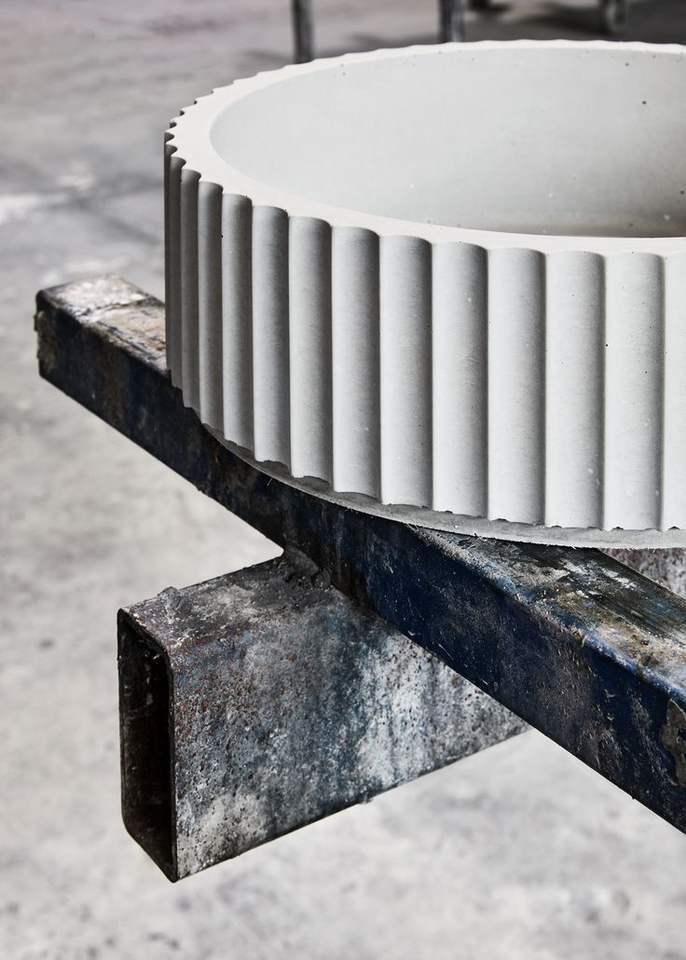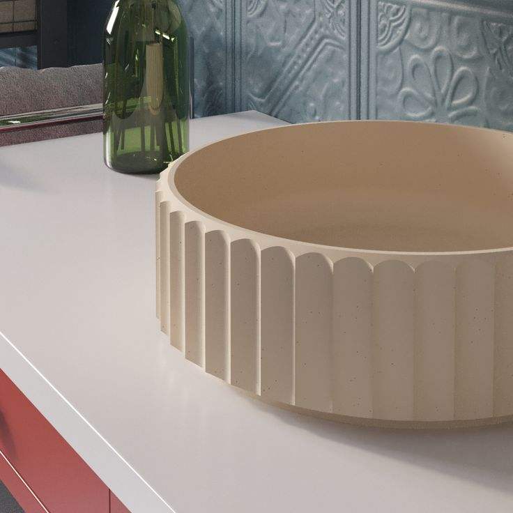 Lavabo Moderno de Cemento Acanalado Redondo OEM, Lavabo de Cemento con Nervaduras, Lavabo Sobre Encimera GFRC, Fabricante Vietnamita
