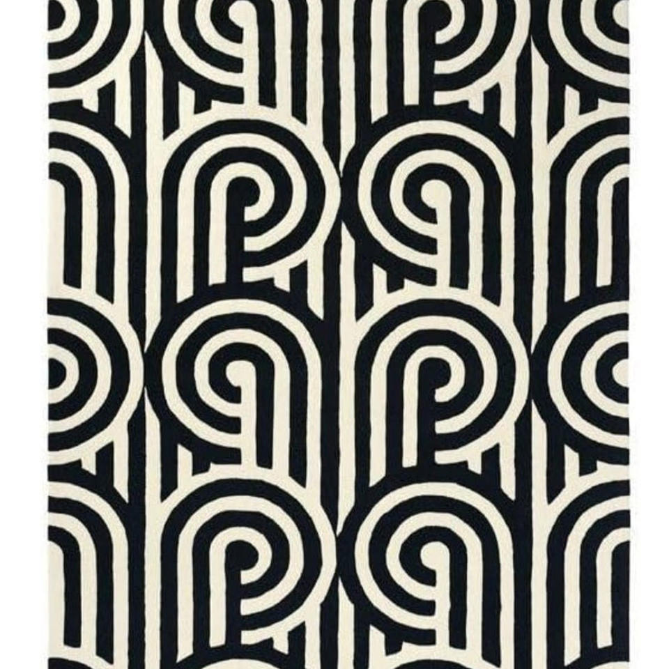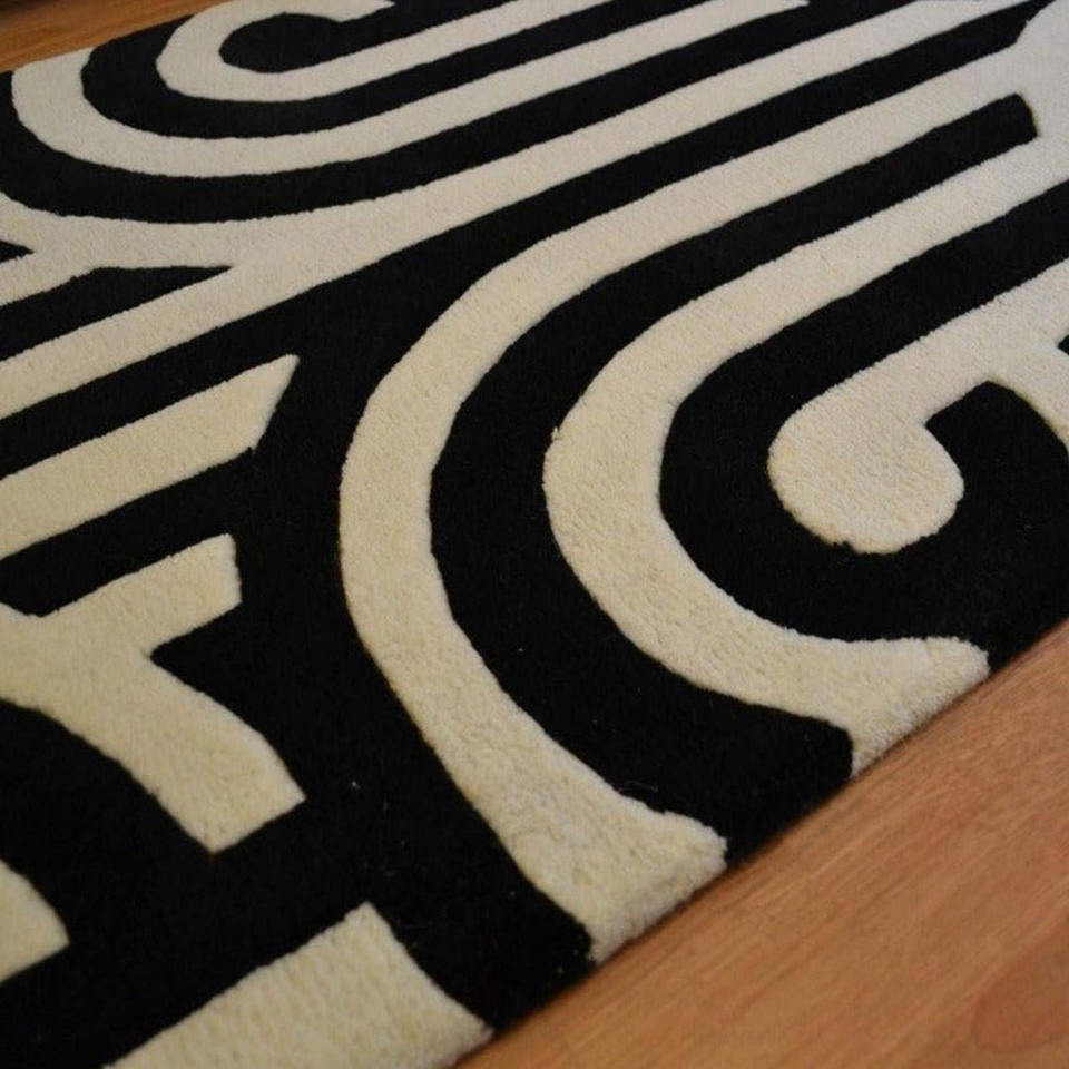 Alfombra Moderna de Diseño Op-Art Hecha a Mano | Alfombra con Patrón Arquitectónico al por Mayor | Alfombra Tufted con Diseño de Laberinto Lineal de Alto Contraste