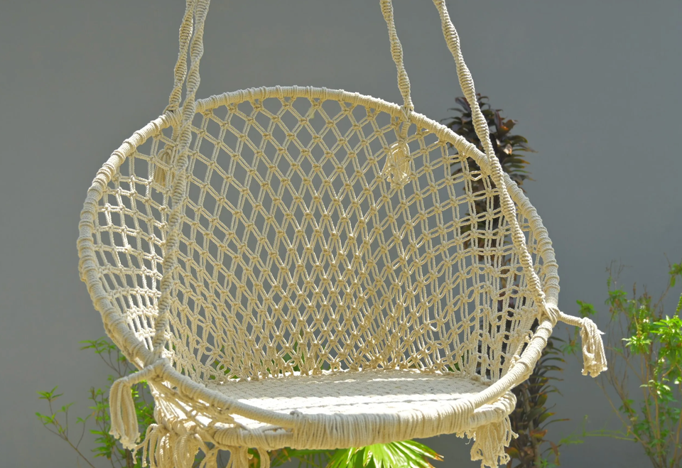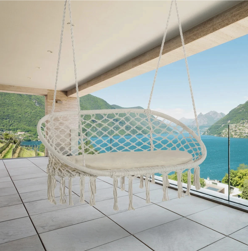 Macramé bohemio moderno para exteriores, hecho a mano, respetuoso con el medio ambiente, cuerda de algodón, silla colgante, columpio para uso en el hogar y el patio