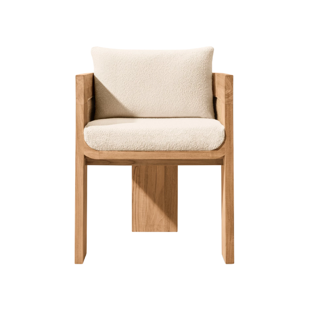 Silla de exterior moderna con marco de madera de teca y asiento de ratán tejido