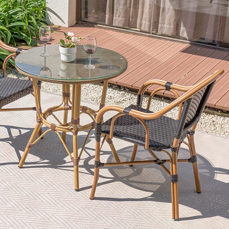 Sillas de comedor apilables de ratán de aluminio para jardín moderno al aire libre, silla de bambú para Hotel, restaurante, muebles de Patio usados