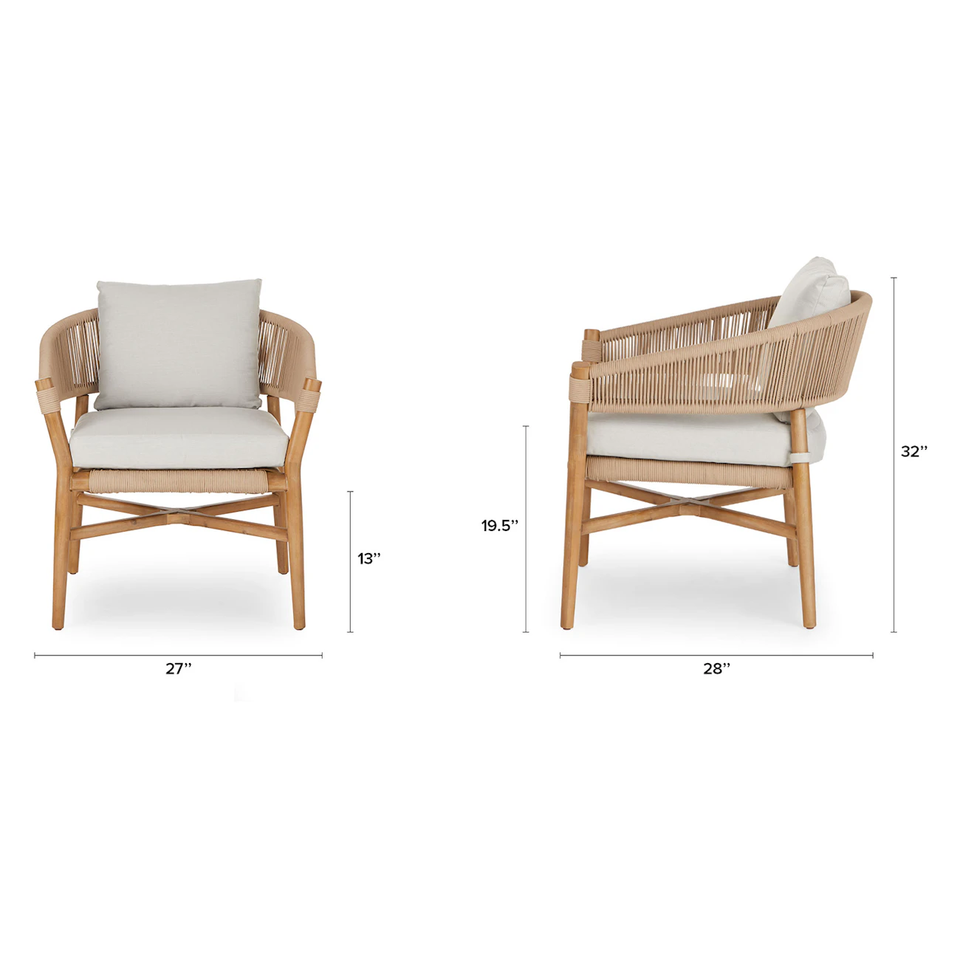 Moderno jardín al aire libre Patio Set madera sólida y cuerda tejida Silla de comedor para hoteles