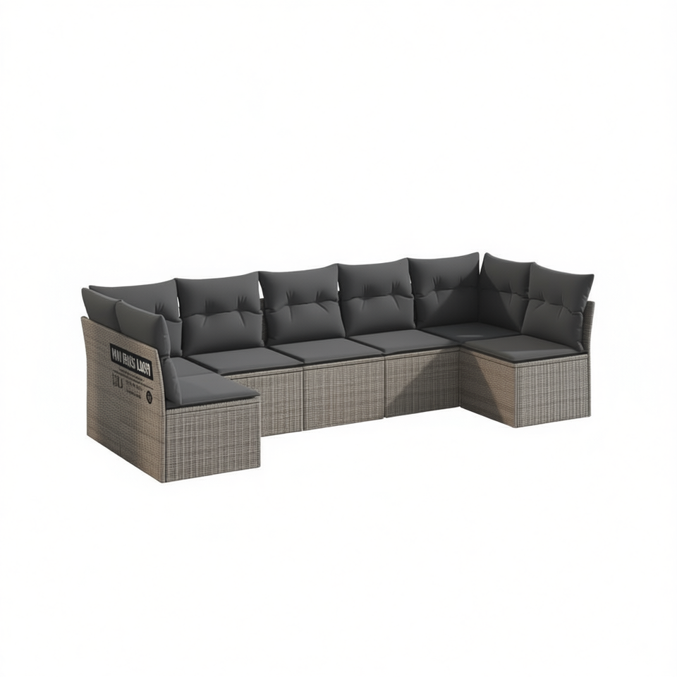 Conjunto de Sofás de Jardín de Ratán Sintético Gris para Exteriores, Diseño Modular Contemporáneo de 6 Plazas para Patio y Jardín