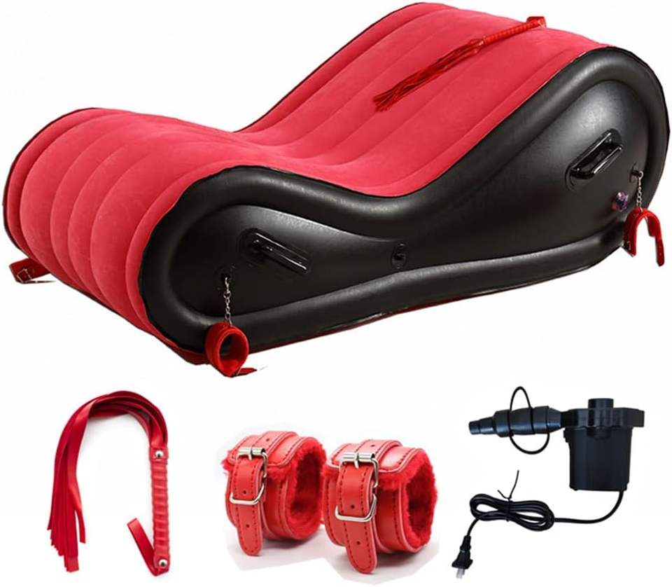 Sofá Inflable Moderno para Exteriores, de Tela Roja Aterciopelada, con Cojín Lumbar, Restricciones para las Manos y los Pies, Estructura de Espuma, para Parejas