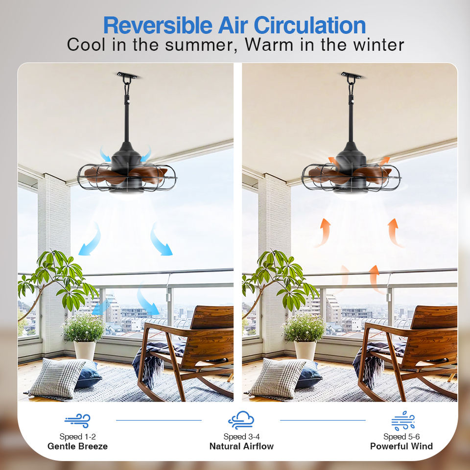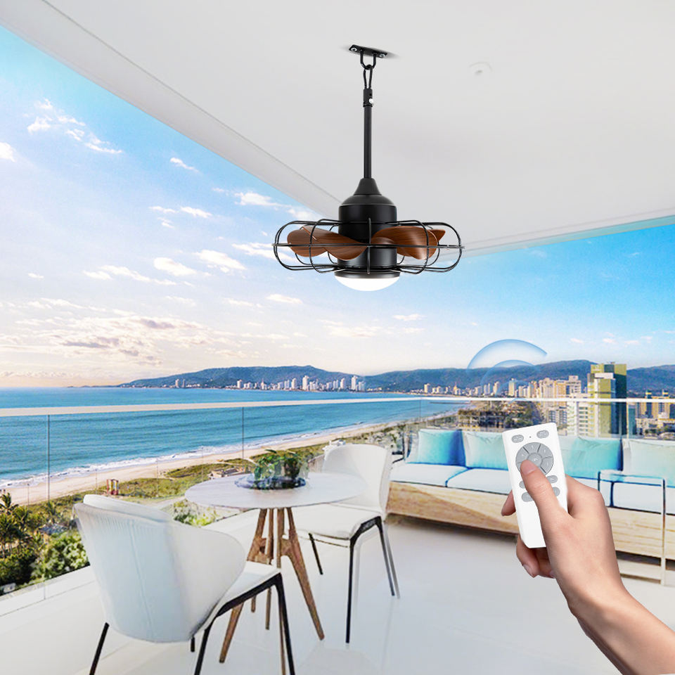 Ventilador de Techo LED DC Moderno para Exteriores, Impermeable IP44, con Control Remoto Inteligente, Cuerpo de Hierro Resistente al Óxido