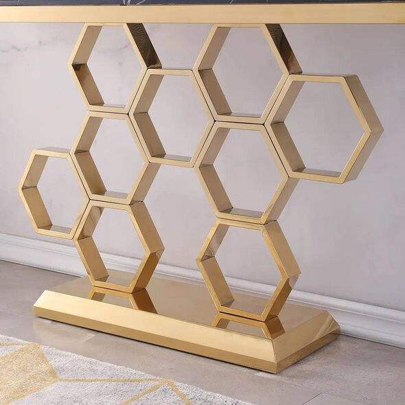 Mesa Consola Ovalada Moderna de Mármol con Base Metálica Artística en Forma de Panal para Interiores de Lujo