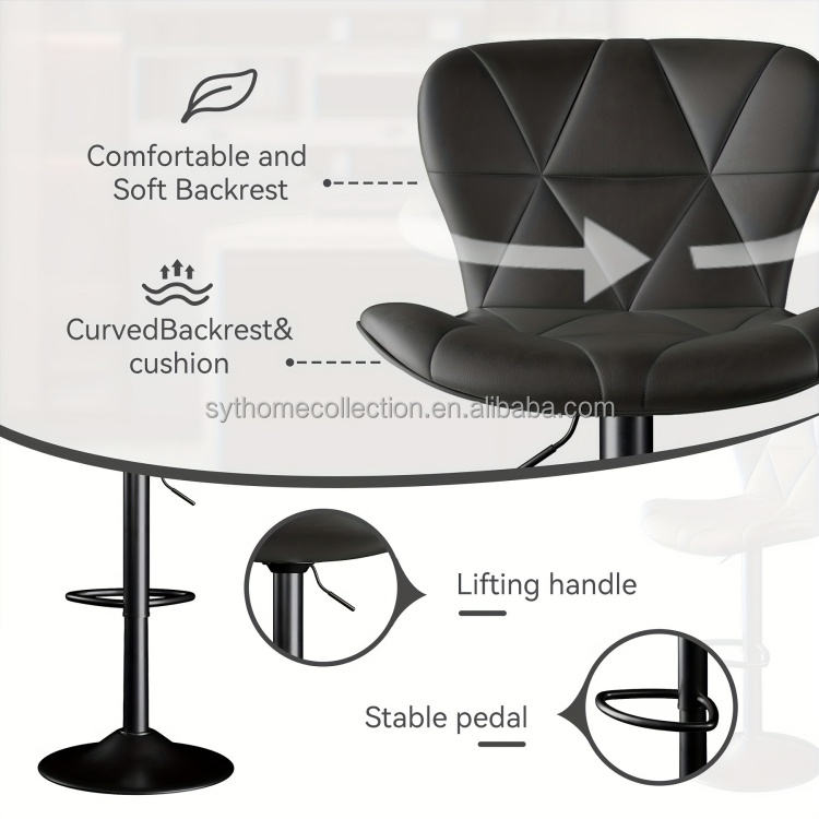 Modernos Taburetes de Bar Giratorios de PU con Respaldo Ajustable y Cómodo, Silla de Bar con Reposapiés, Adecuada para Cocinas y Comedores