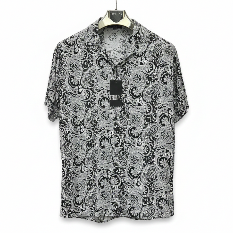 Camisa Moderna de Manga Corta para Hombre con Estampado Floral, Corte Holgado, Tela Ligera, Transpirable, Ecológica, Elegante, Ropa Casual de Verano