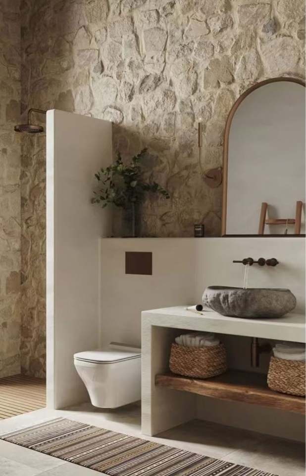 Mueble de Baño Moderno de Madera Maciza Estilo Wabi-Sabi Personalizado con Espejo Inteligente