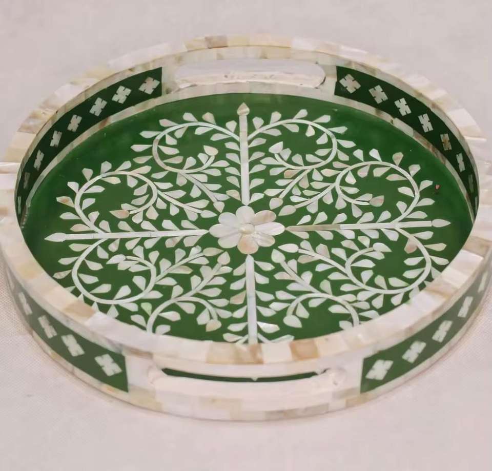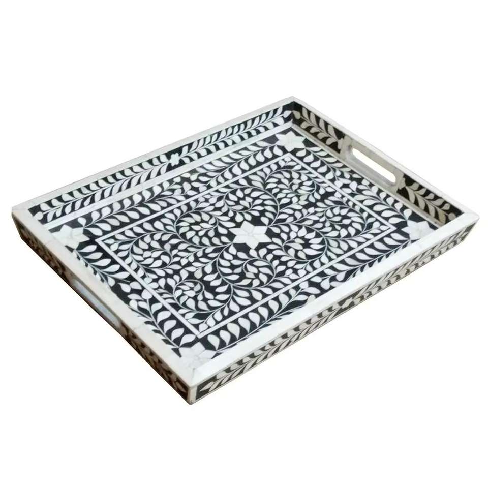 Bandeja de servicio rectangular con incrustaciones de hueso liso moderno, muebles para el hogar de alta calidad con mármol y plástico con patrones diferentes