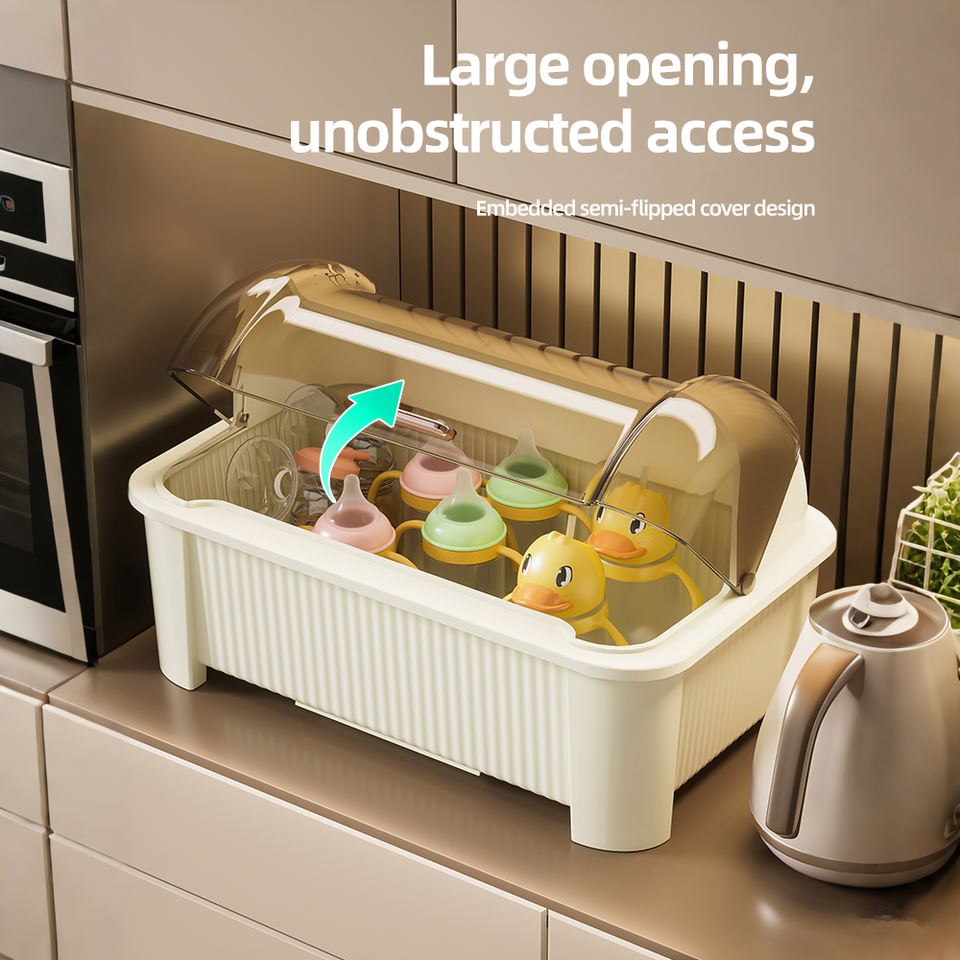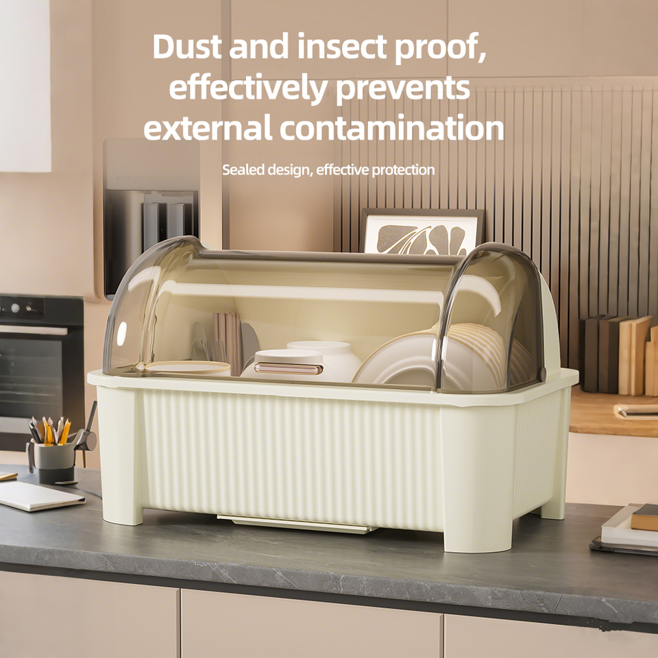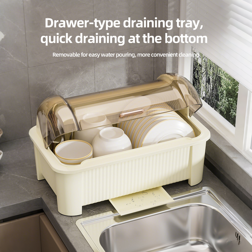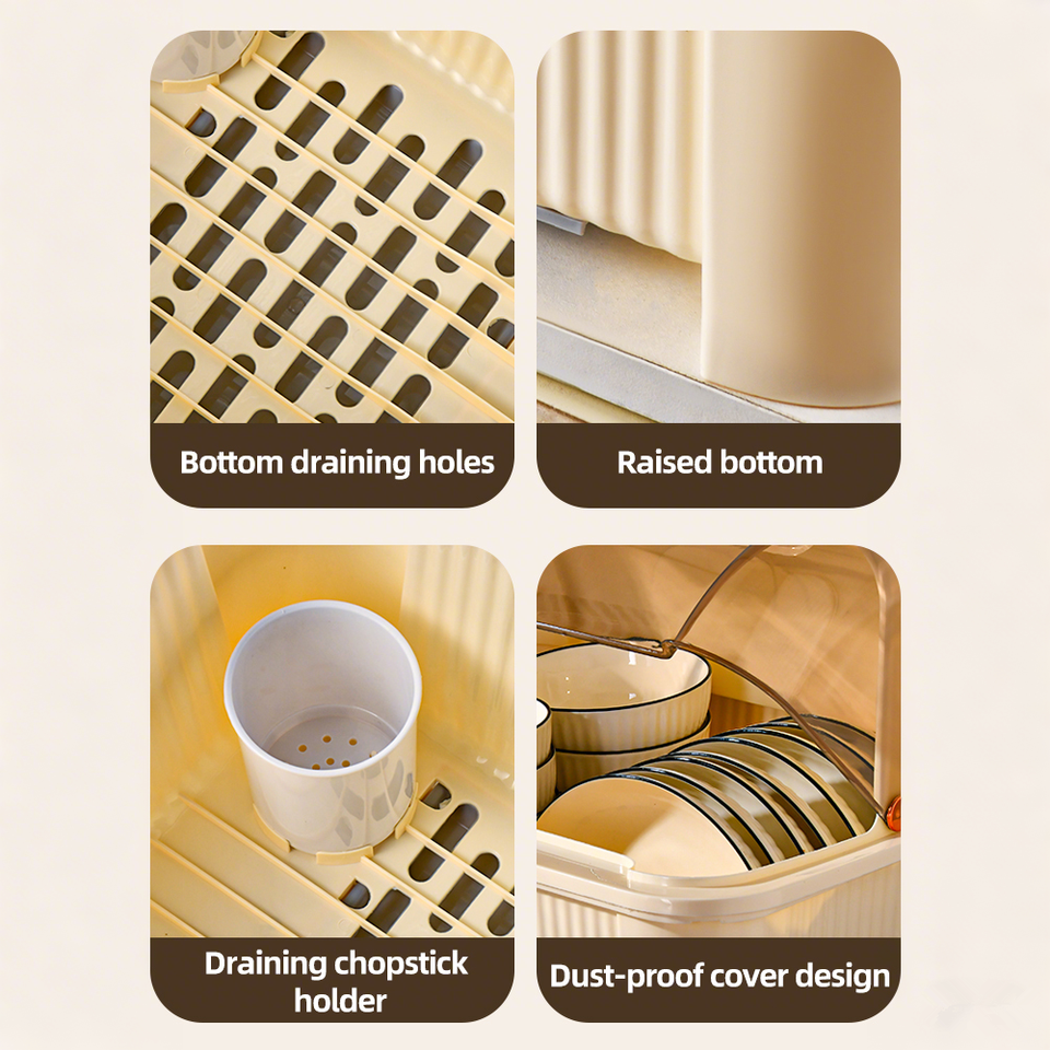 Organizador de cocina de plástico moderno, tapa a prueba de polvo, escurridor eficiente de platos, cubiertos, estante de almacenamiento de secado, escurridor de utensilios