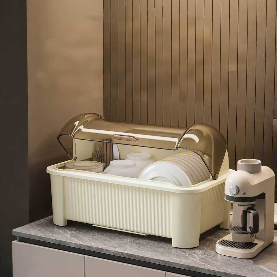 Escurridor de platos de cocina con caja de almacenamiento