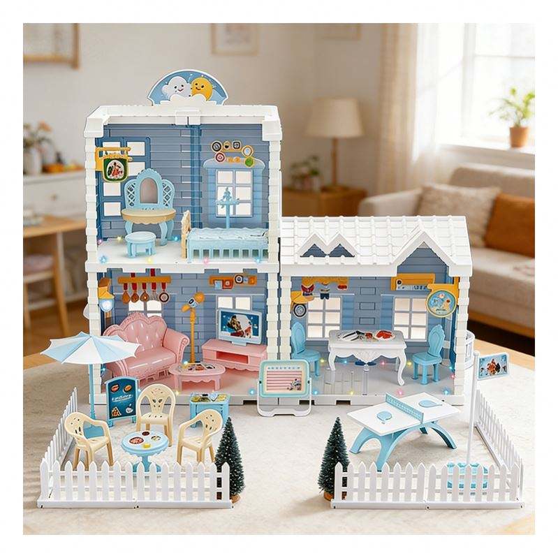 Moderna Casa de Muñecas de Plástico PVC, Juego de Dormitorio, Cocina, Baño, Balcón, Muebles, Juego de Imitación, Regalo para Niños, Hogar Familiar