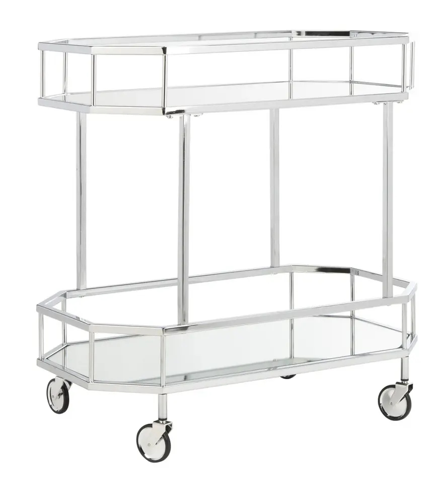 Carrito de Decoración Moderno con Acabado Plateado, Carrito Industrial Hecho a Mano de Primera Calidad, Carrito Ecológico de Tendencia para Hoteles y Resorts