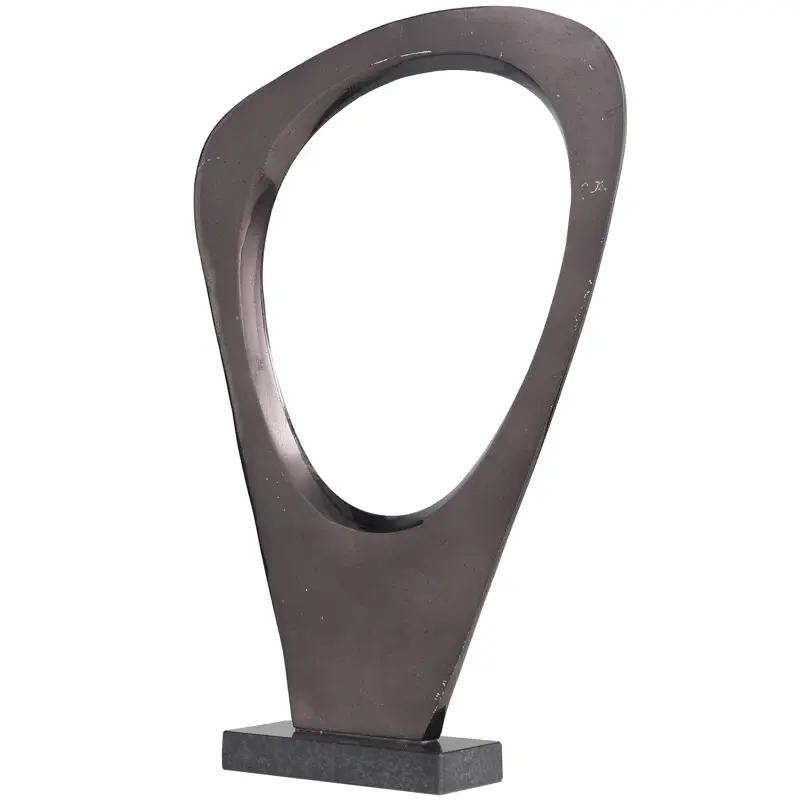 Escultura abstracta de aluminio pulido moderno con base de mármol gris oscuro Modo DE DICIEMBRE antiguo Pulido elegante