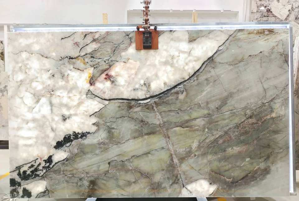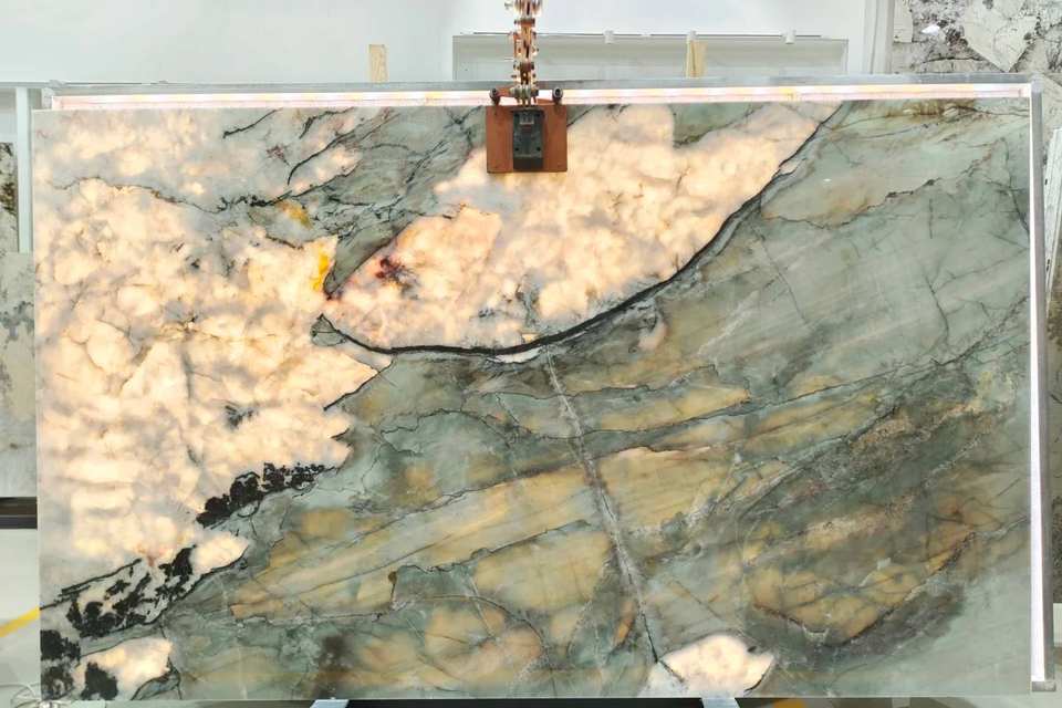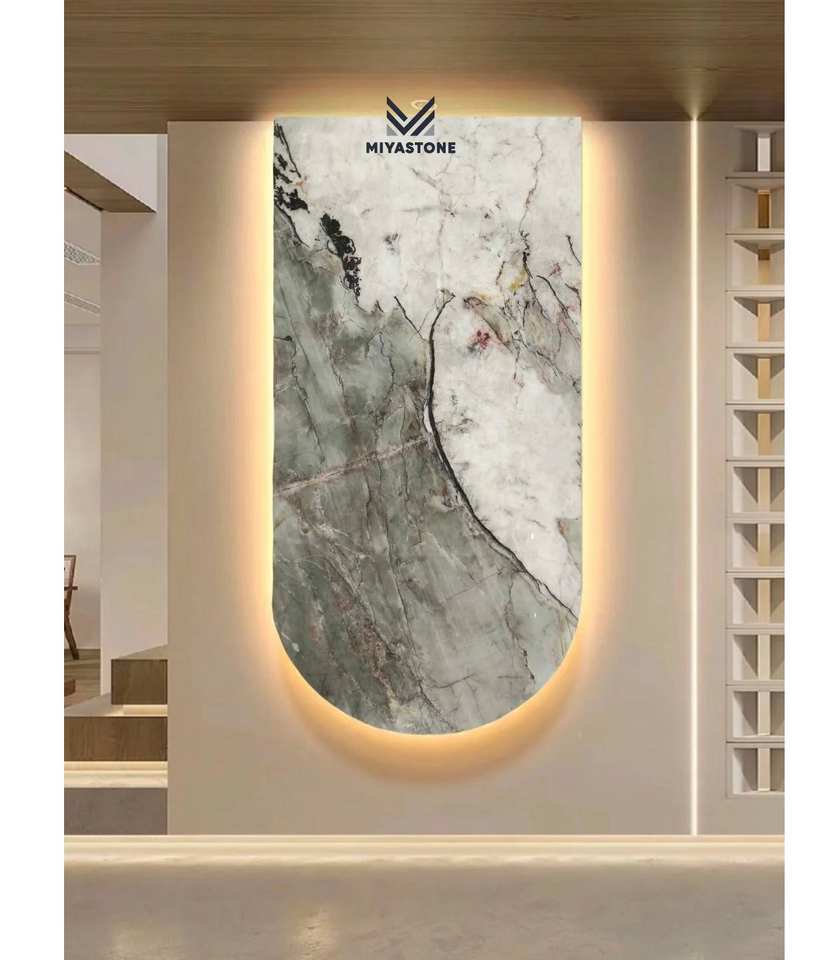Panel de Piedra Verde Pulida Moderna de Lujo para Pared Interior Retroiluminada, Vetas de Jade Natural, Panel Translúcido, Decoración de Alta Gama