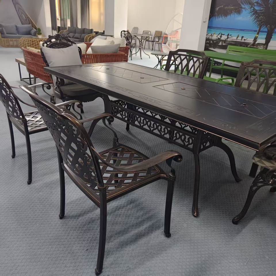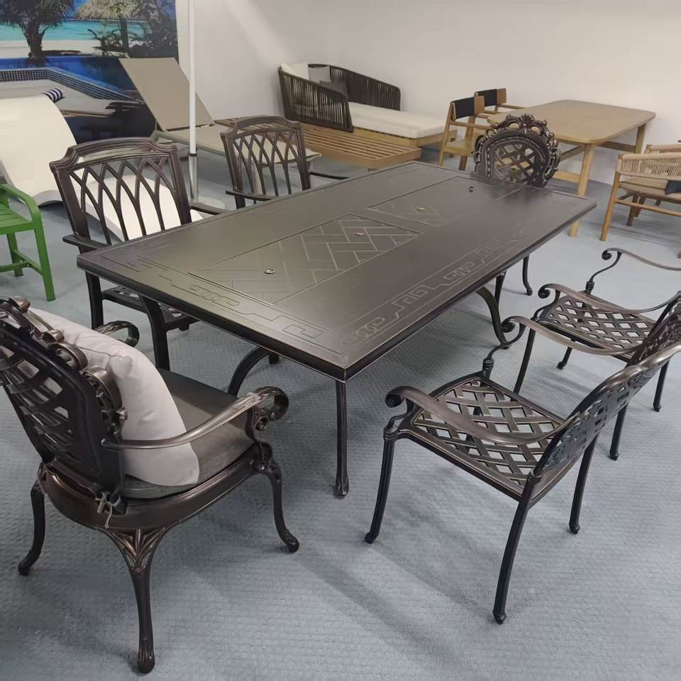 Azulejo de cerámica popular moderno, marco de aluminio, muebles de exterior, mesa de comedor y juego de sillas para Patio