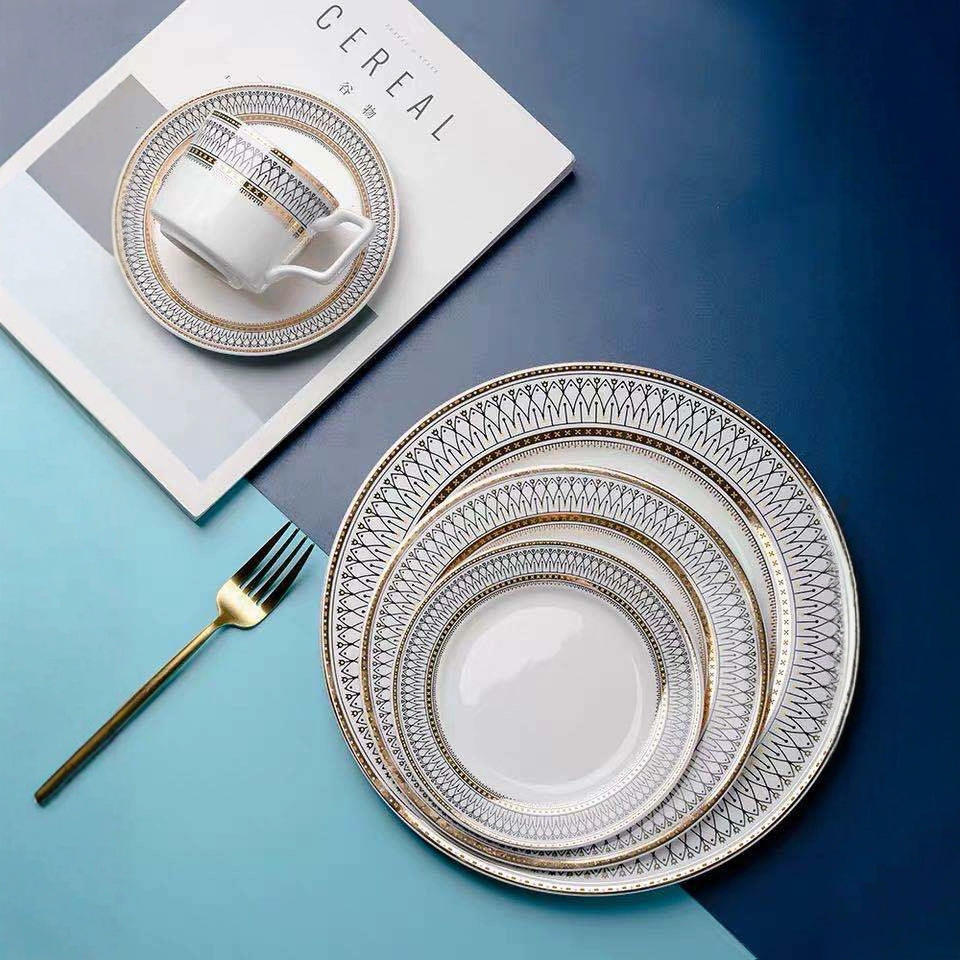 Vajilla Moderna Portátil y Reutilizable con Platos, Tazones y Cubiertos de Porcelana China - Apta para Lavavajillas - Para 2-6 Personas