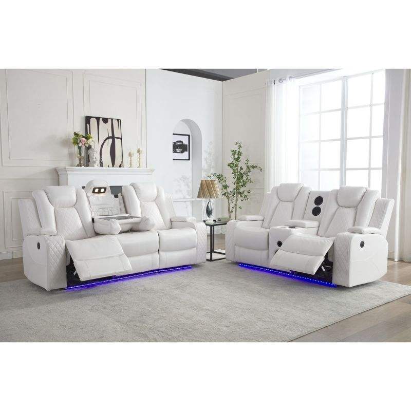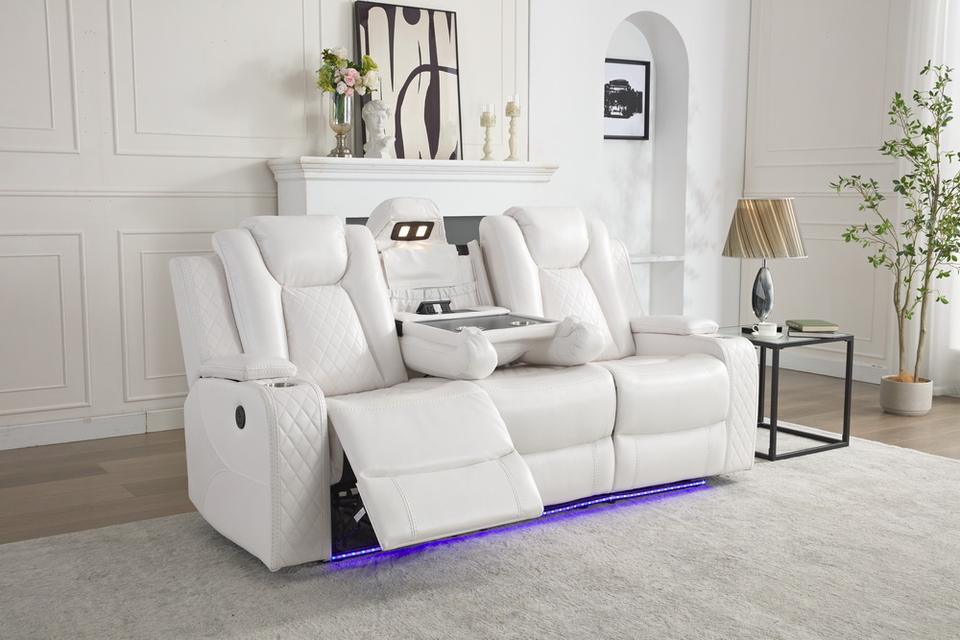 Moderno Conjunto de Sofá Reclinable Eléctrico 3+2 con Iluminación LED, Luces de Lectura, Puertos USB, Portavasos, Mesa Abatible y Tapicería de Cuero Extensible