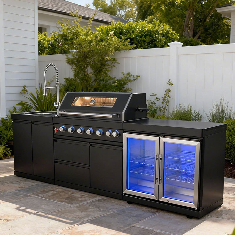 Mueble de Cocina Exterior Moderno de Acero Inoxidable Premium para RV, Camping, Isla, Barbacoa, Almacenamiento y Encimera
