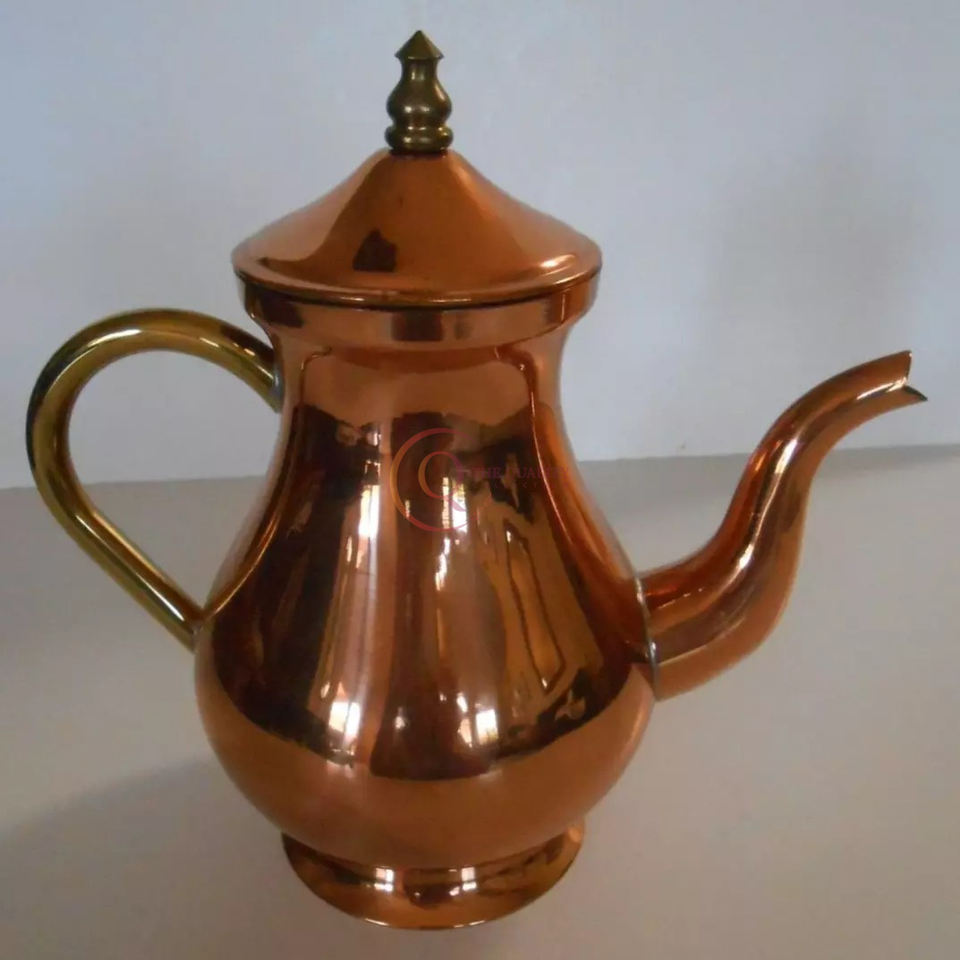 Tetera pura moderna para el hogar, cocina, catering, servicio de café, calentador de té, tetera de café, hecha de cobre, diseño martillado, mango de madera