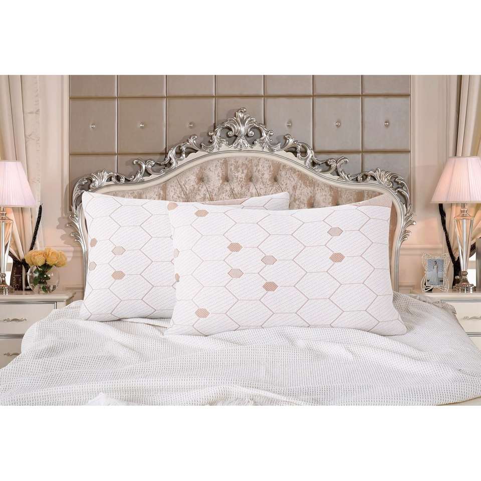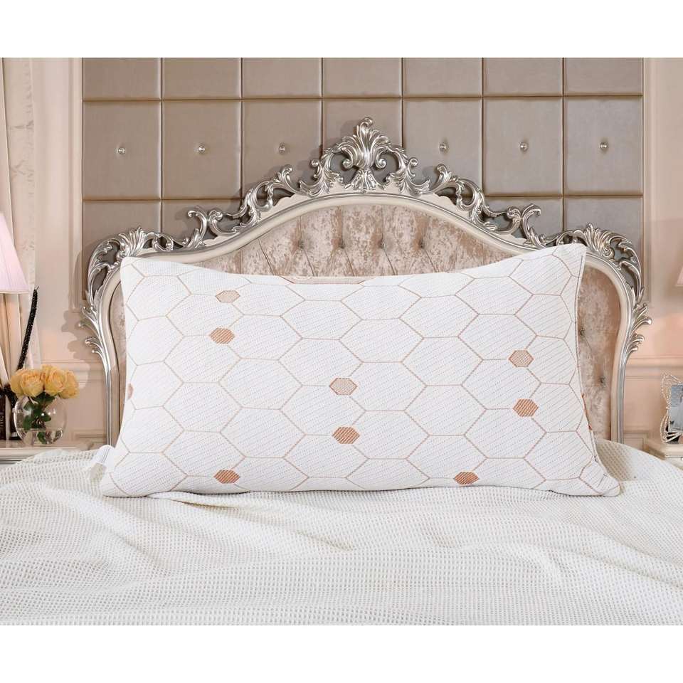 Juego de 2 almohadas modernas Queen de espuma viscoelástica con infusión de cobre, diseño geométrico de bambú, relleno de látex, para cuello y cuerpo, con bolsa práctica