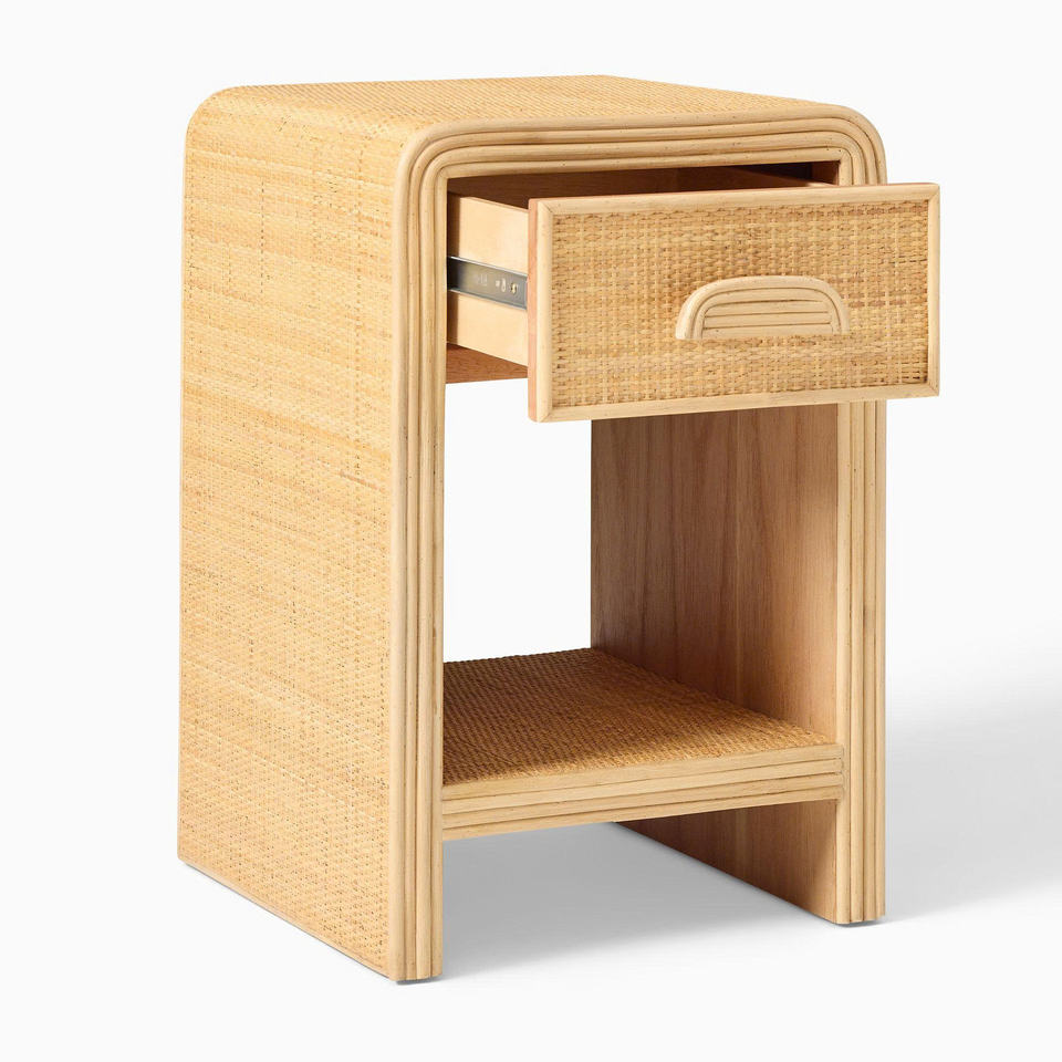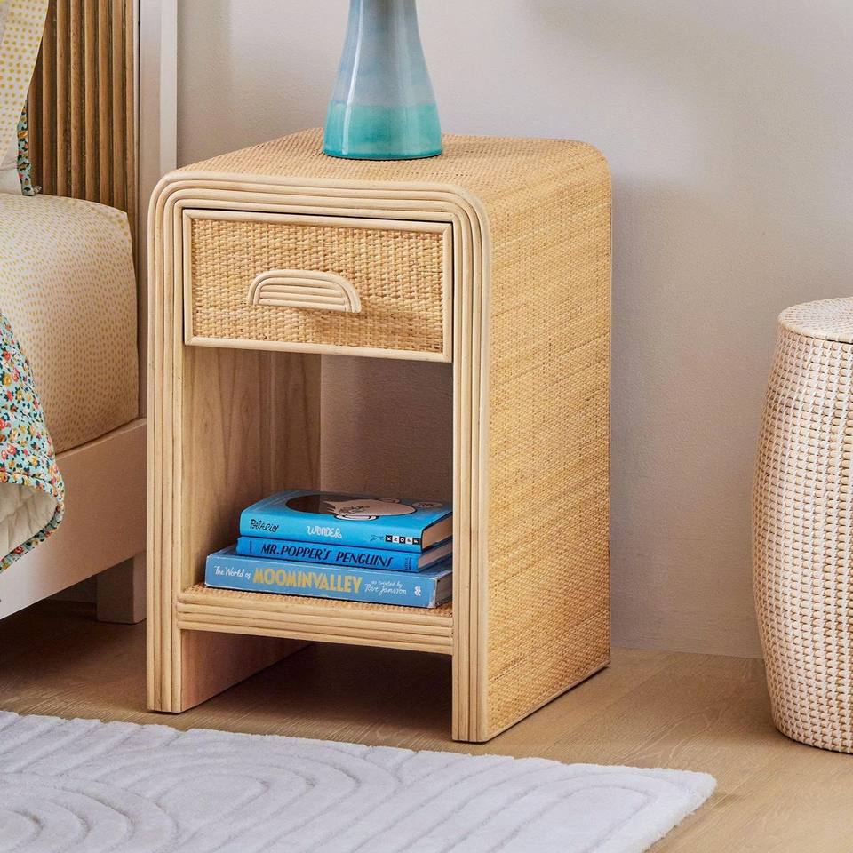 Gabinete moderno de ratán, práctico armario de almacenamiento para la organización del dormitorio infantil y el estilo del hogar.