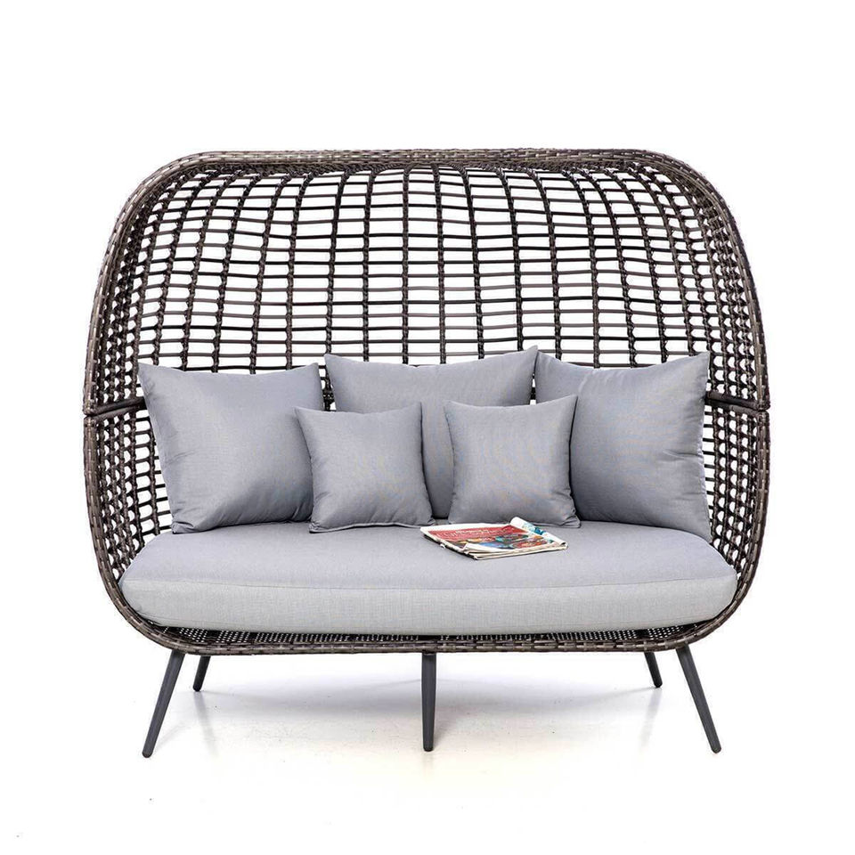 Moderna Silla Huevo de Ratán para Jardín, de Mimbre Tejida a Mano, Asiento Doble Exterior, Mueble para Balcón, Sofá Tumbona Grande para Patio